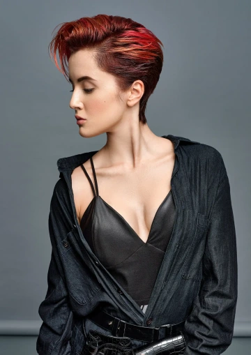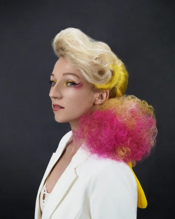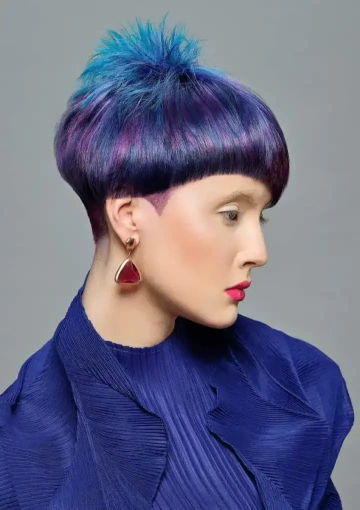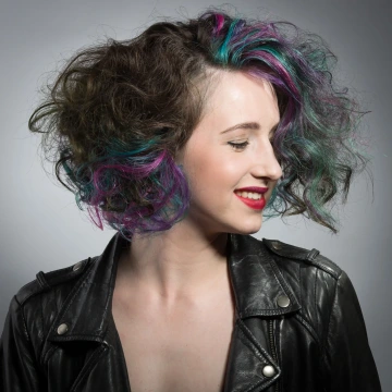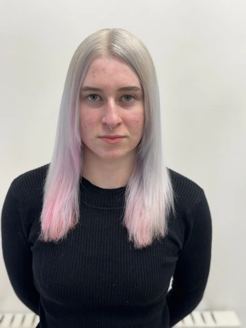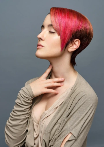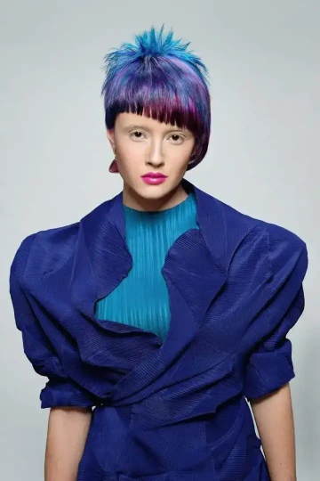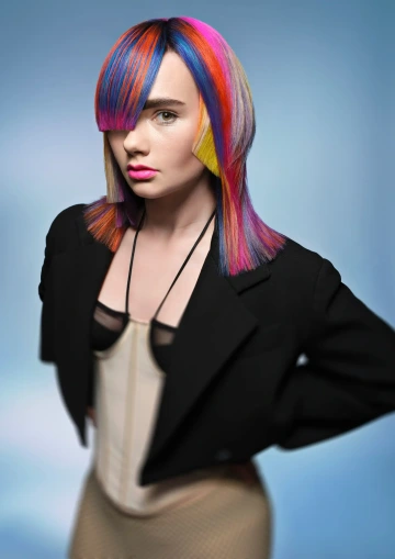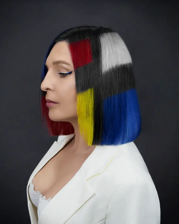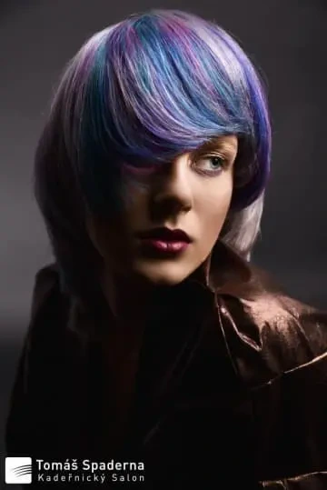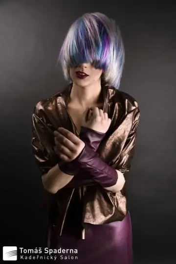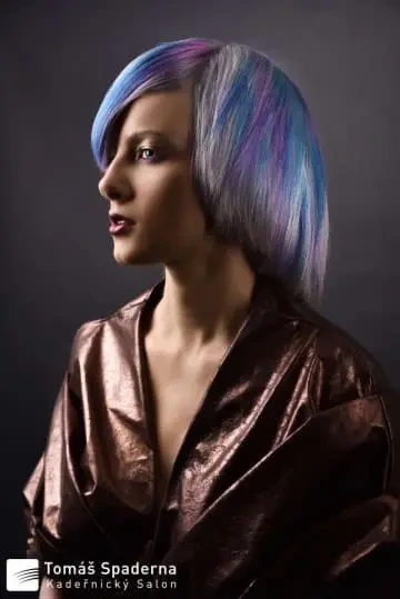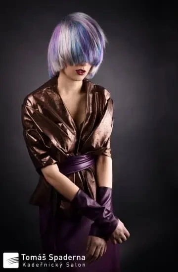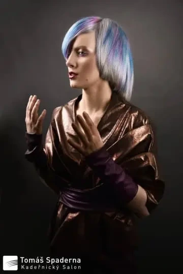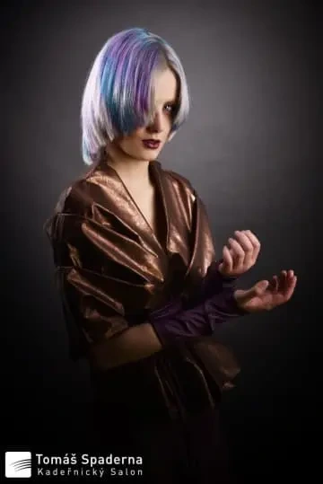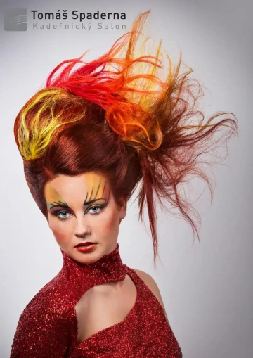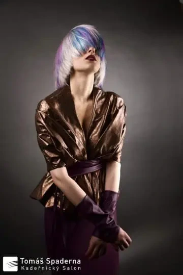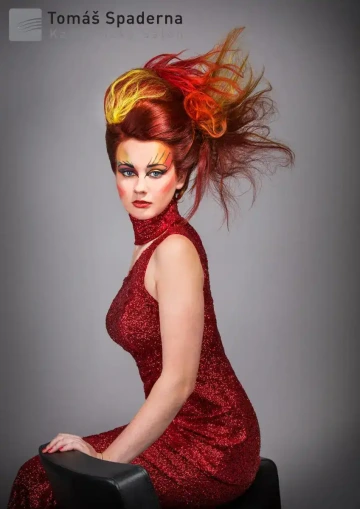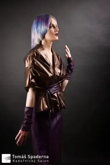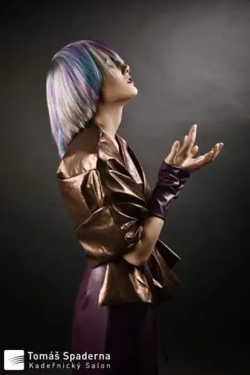Modelce jsme vytvořili střih geometrických tvarů, který jsme zvýraznili barvícími technikami s extravagantními barvami Elumen. Celkový koncept jsme podtrhli výběrem oblečení, který kombinuje extravaganci s elegancí. Modelku bylo nutné si připravit tak, že jsem jí odbarvil na čistou blond a teprve pak pomocí technik nanesl výsledné barvy. V soutěži jsme se umístili na třetím místě v rámci celé České Republiky.